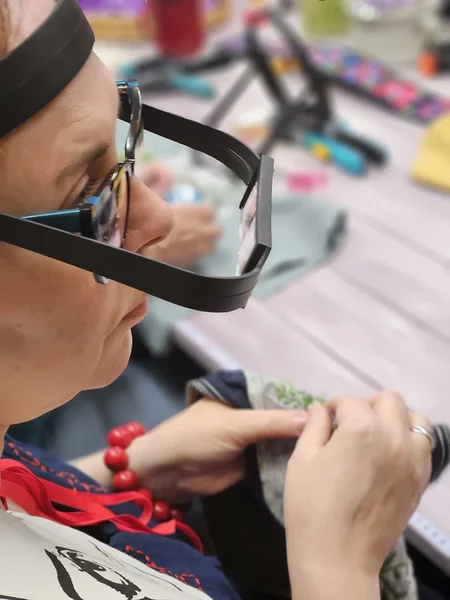 "Peavõruga" luup-prillid on väga head abimehed tikkimisel. TikiMari moodi tikkimine on nagu kellassepatöö, et tulemus oleks hea, peab väga hästi nägema.